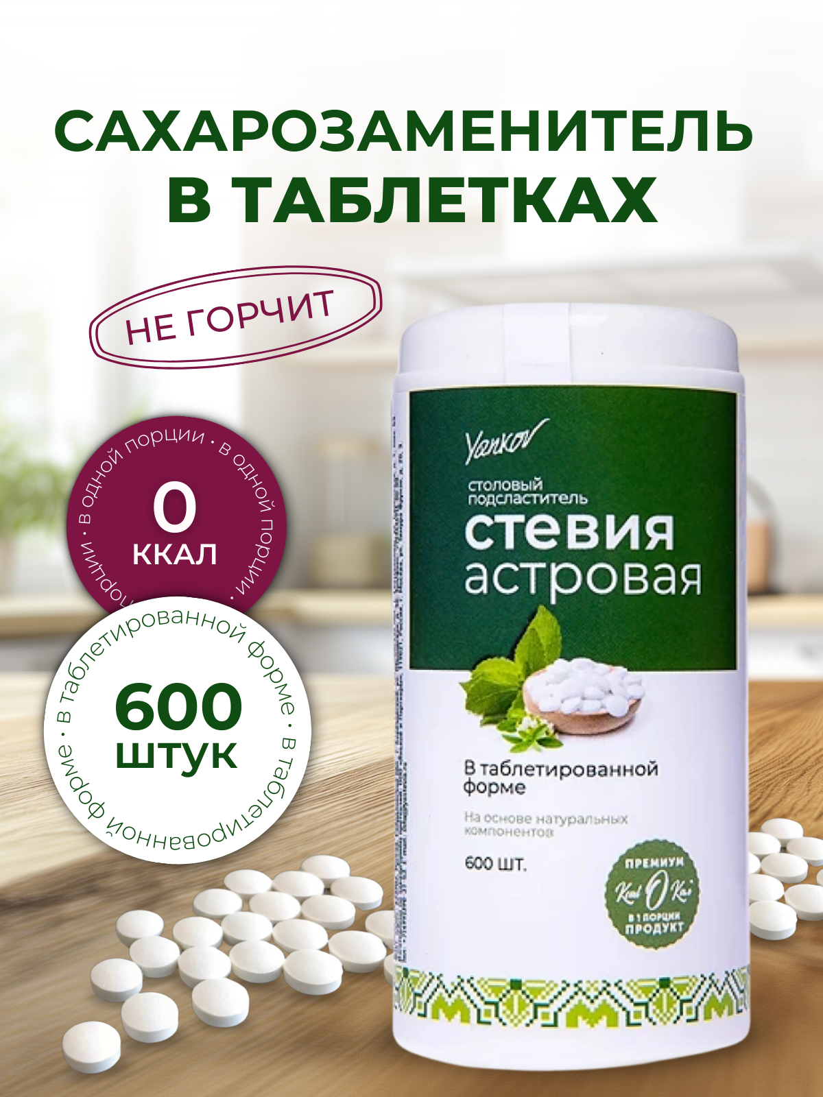10 цен на Сахарозаменитель в таблетках Yankov Стевия Астровая, 600 шт.