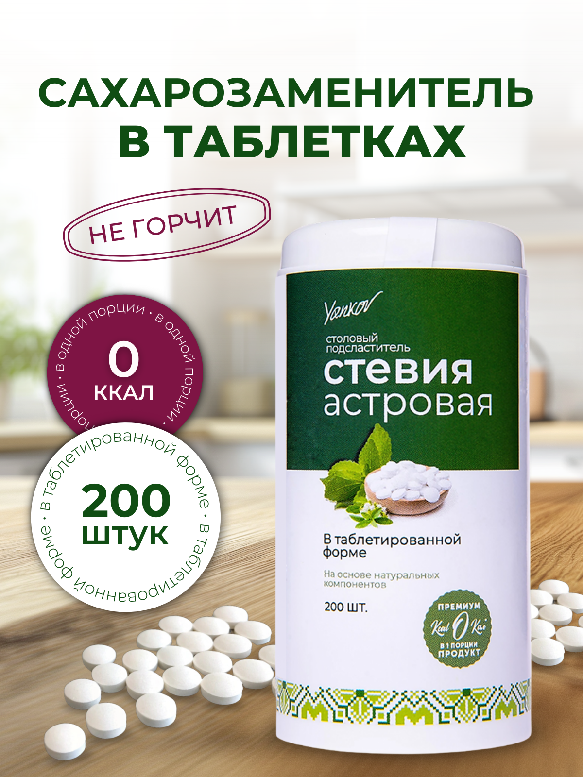 Сахарозаменитель в таблетках Yankov Стевия Астровая, 200 штук информация: