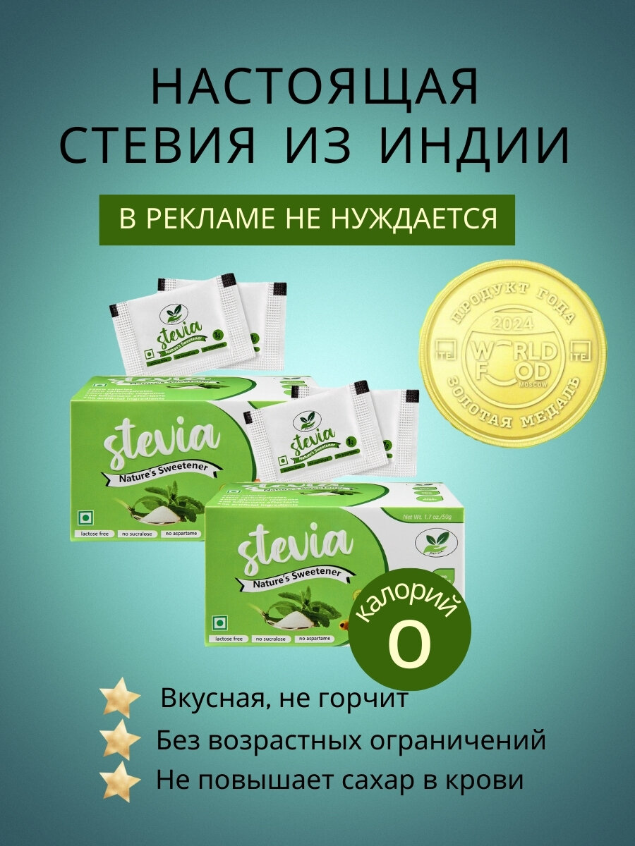 Сахарозаменитель Стевия природный , натуральный подсластитель в саше 50 штук - 3 упаковки 899 ₽