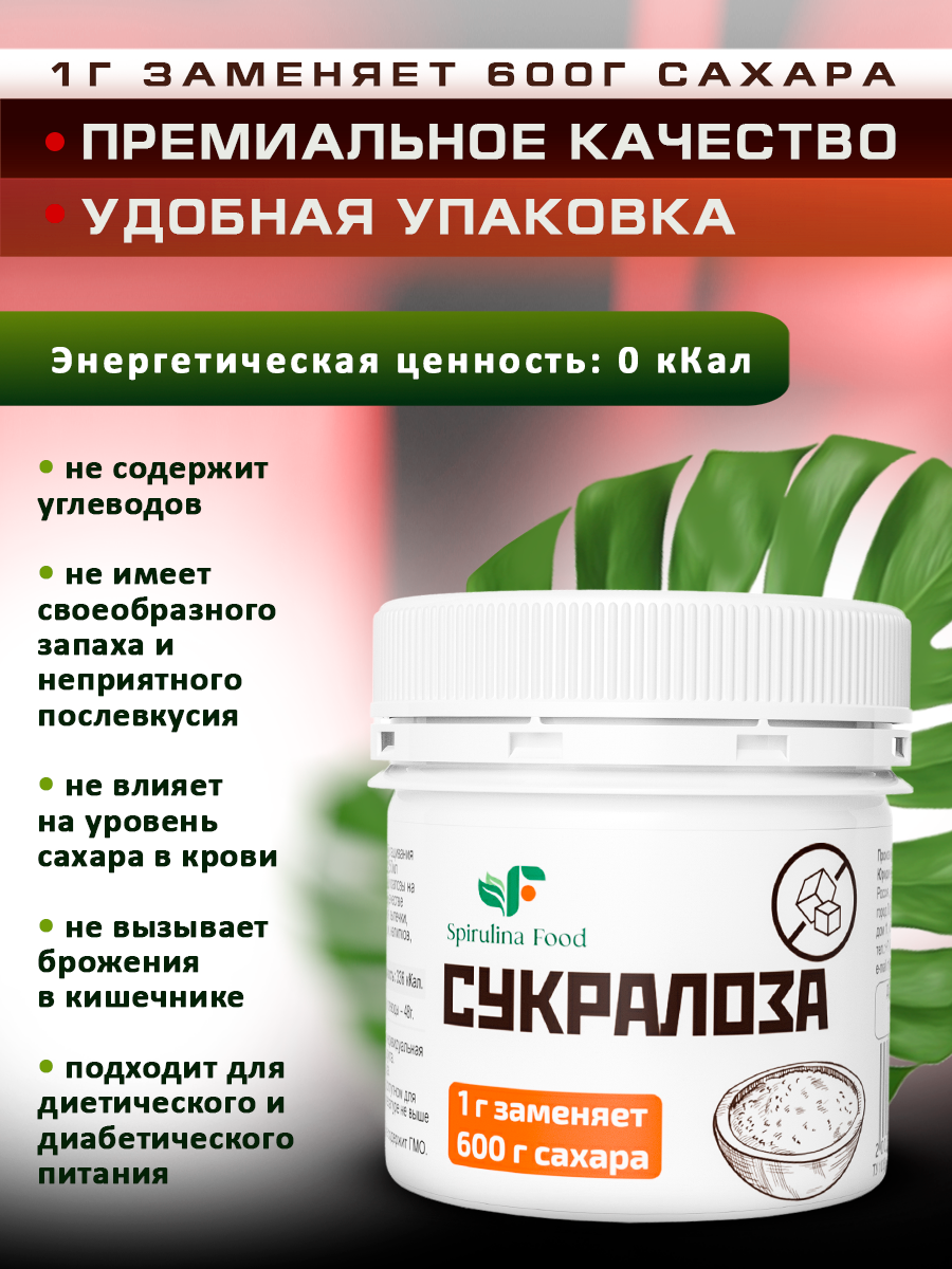 Сахарозаменитель сукралоза Spirulinafood, 50 гр информация: