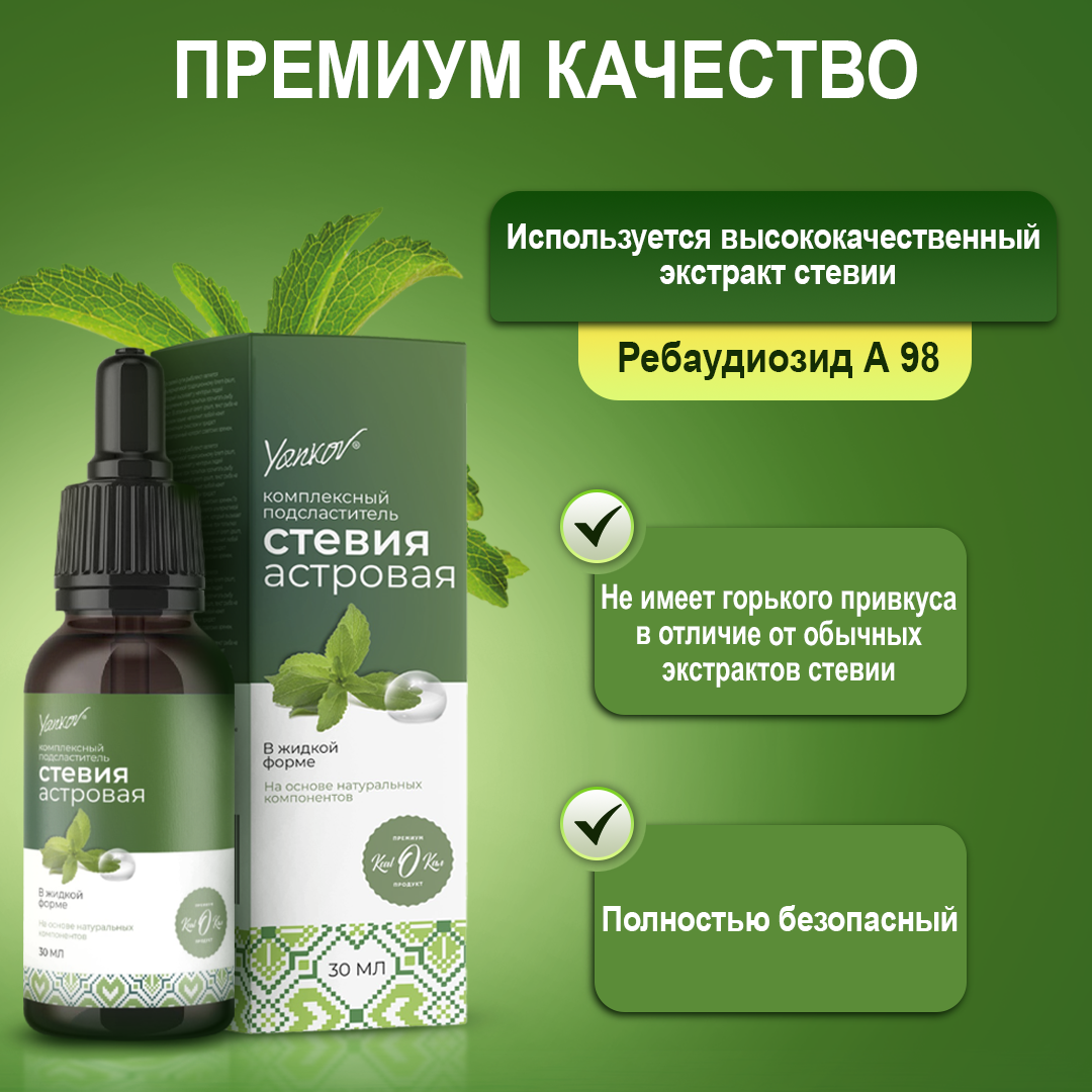 Сахарозаменитель Yankov жидкий премиум Стевия 30мл. информация: