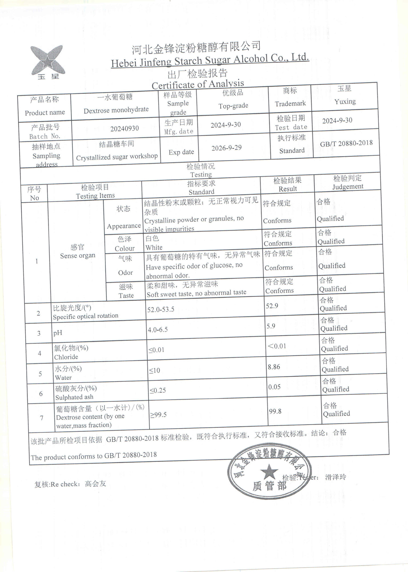Глюкоза (декстроза моногидрат) кристаллическая 25 кг. Китай информация: