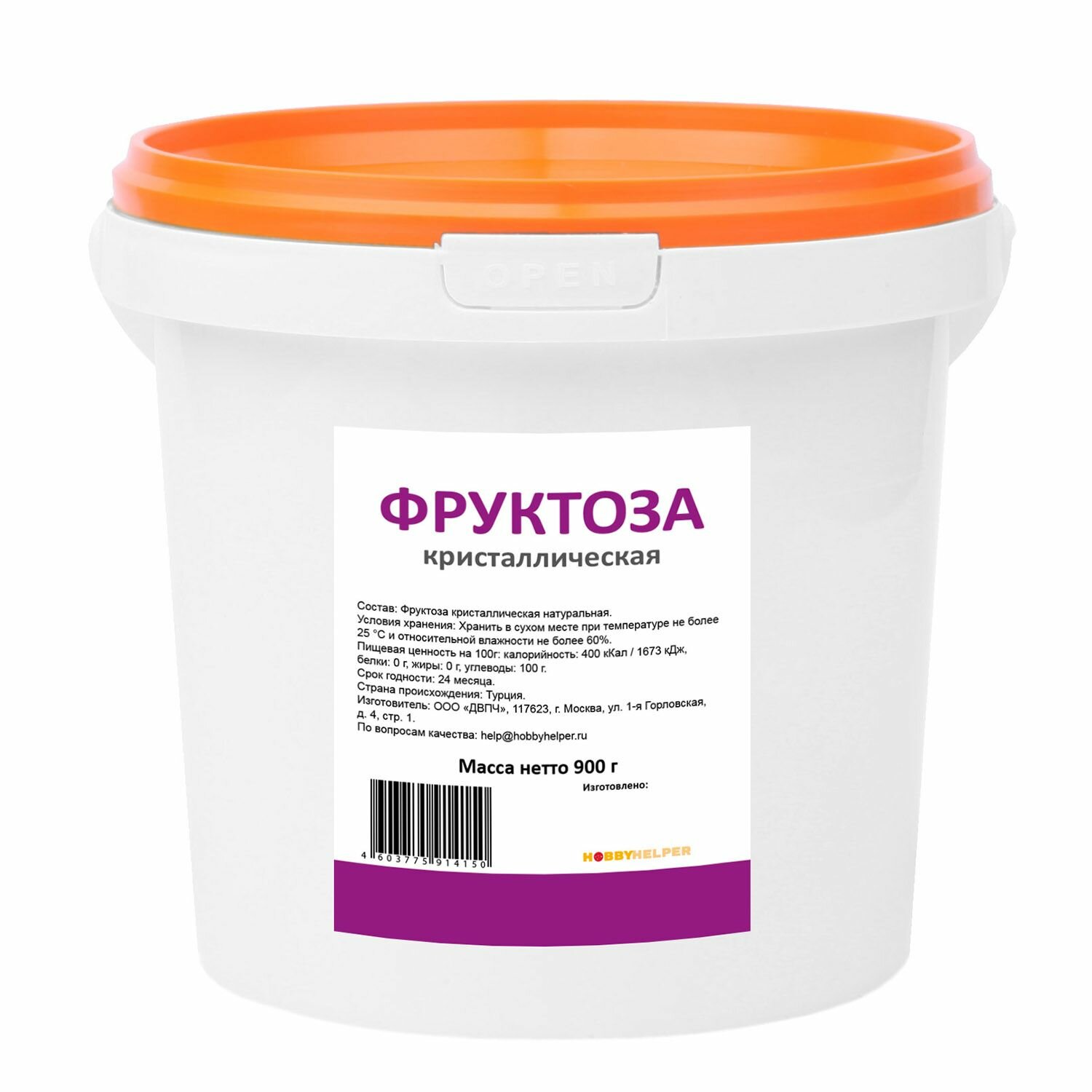Фруктоза HOBBYHELPER в ведре 900г информация: