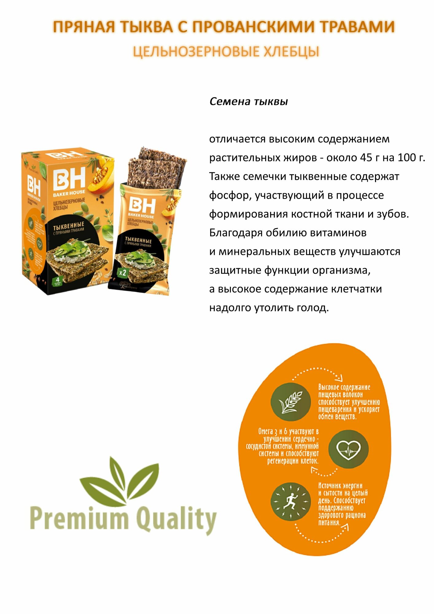 Хлебцы Baker House Скандинавские цельнозерновые тыквенные с прованскими травами, 180 гр информация: