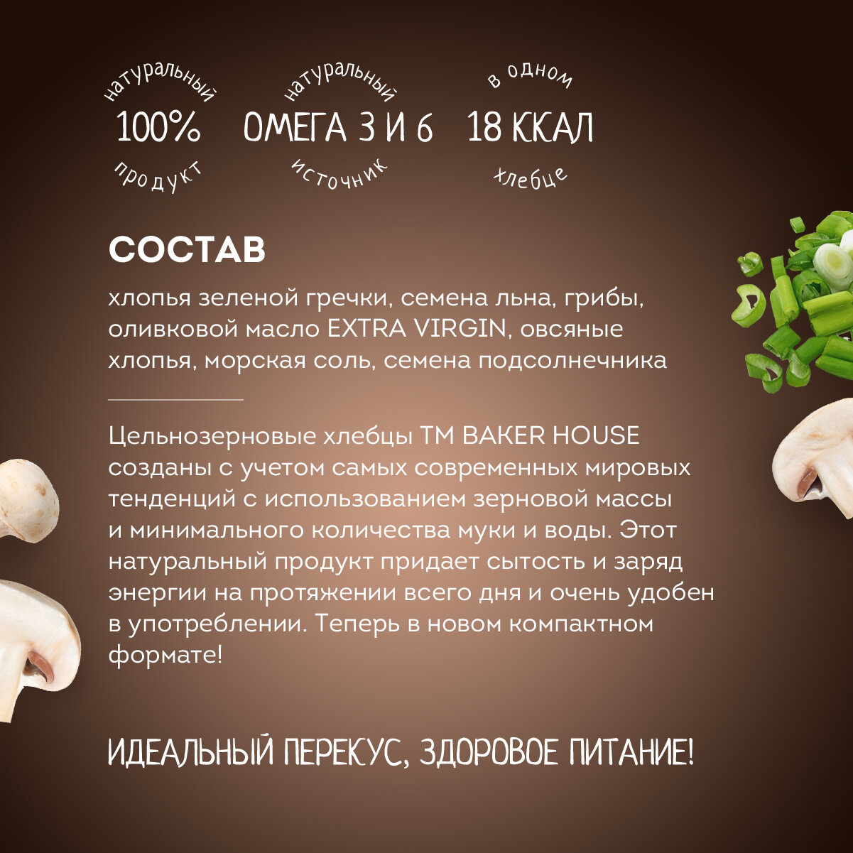Хлебцы Baker House цельнозерновые гречневые с луком и грибами 50гр (10шт) информация: