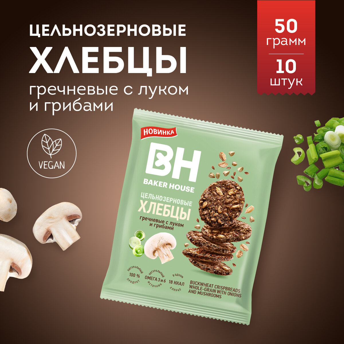 10 цен на Хлебцы Baker House цельнозерновые гречневые с луком и грибами 50гр (10шт)