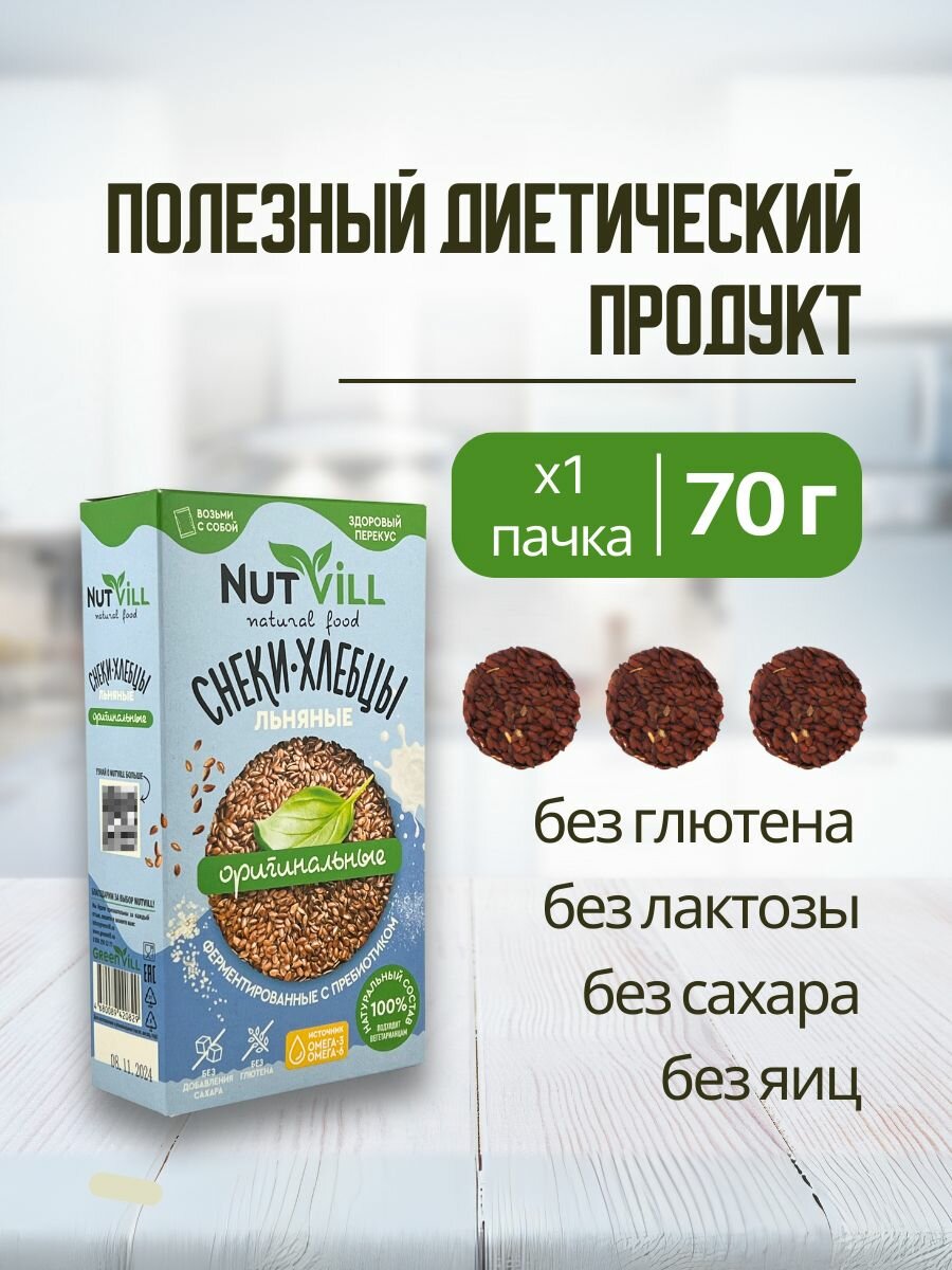 NutVill Снеки-хлебцы льняные Оригинальные без глютена, 3 шт. информация: