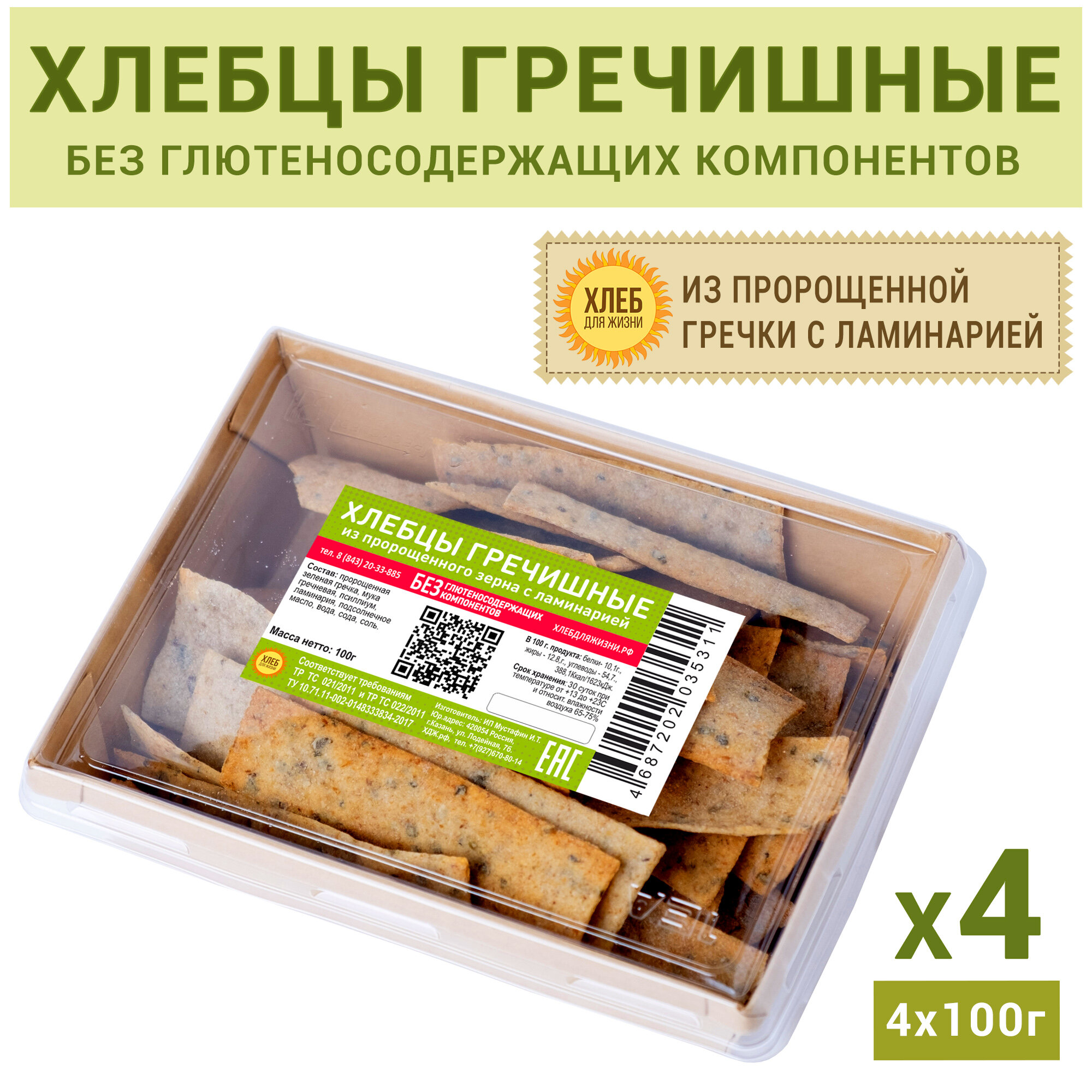 10 цен на (4х100г) Хлебцы гречишные безглютеновые, из пророщенной гречки с ламинарией