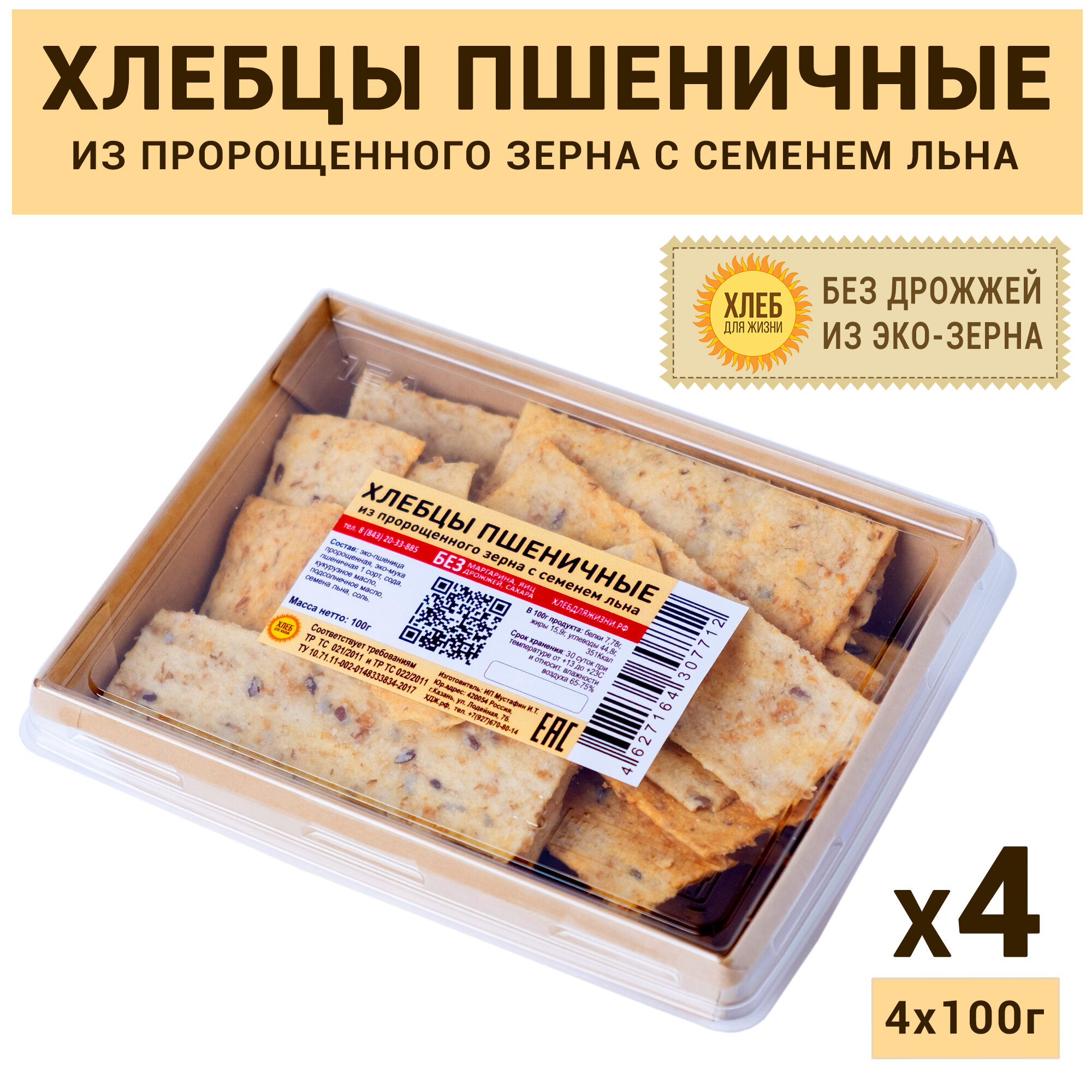 10 цен на (4х100г) Хлебцы Пшеничные из пророщенного зерна с семенами льна