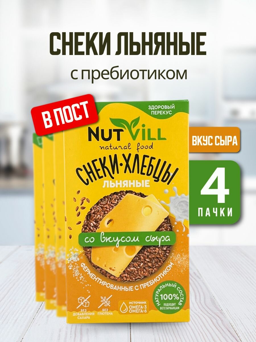 10 цен на NutVill Снеки-хлебцы льняные Сыр без глютена, 4 шт