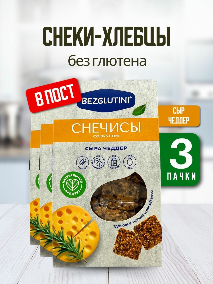 10 цен на Bezglutini Снечисы со вкусом сыра чеддер без лактозы и глютена, 3 шт