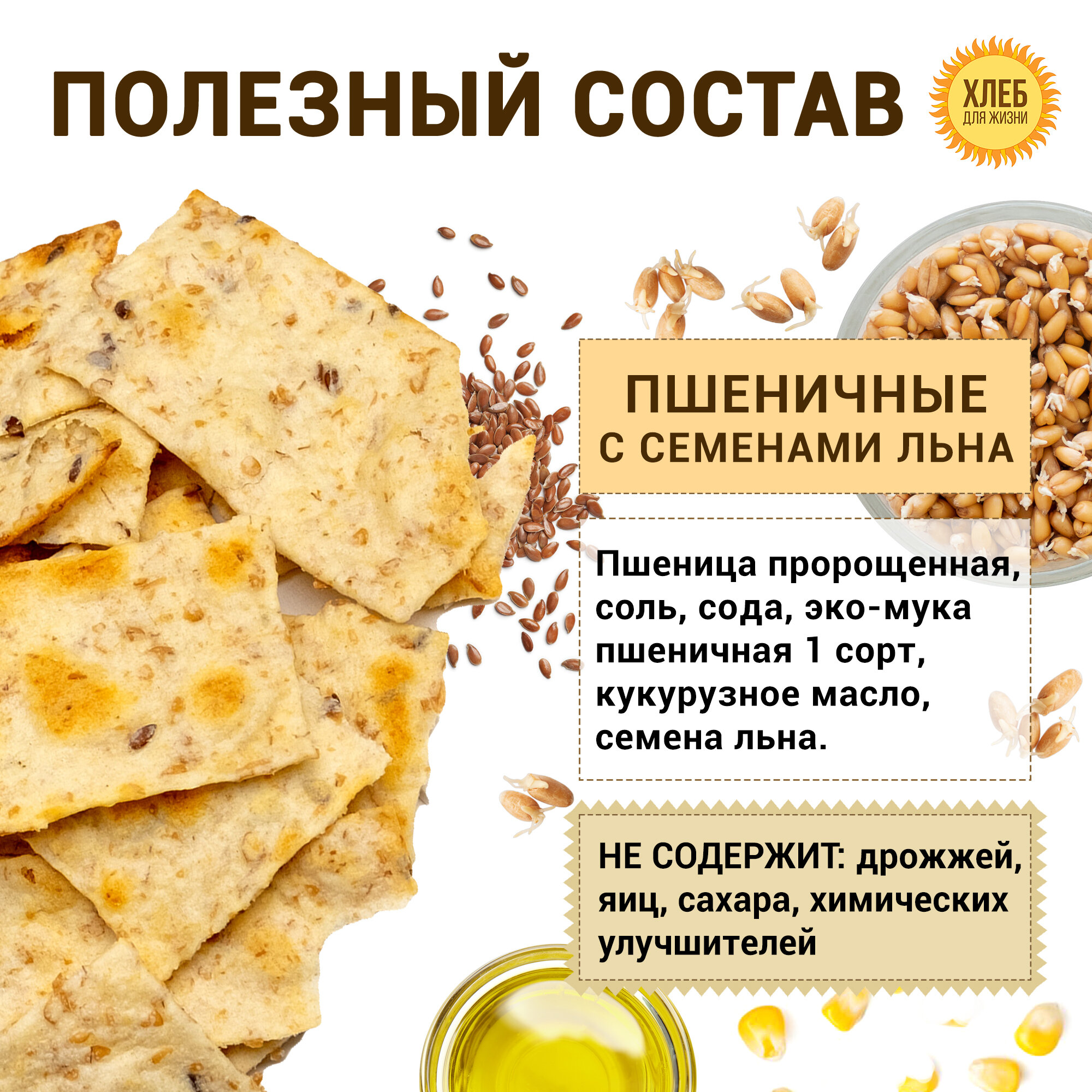 (6х100г) Хлебцы Пшеничные из пророщенного зерна с семенами льна информация: