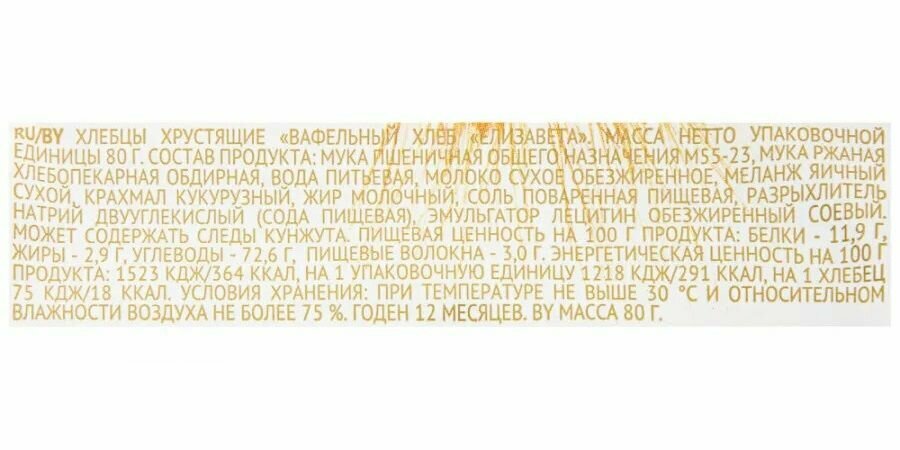 Хлебцы хрустящие "Вафельный хлеб "Елизавета", 3 шт. по 80 г информация:
