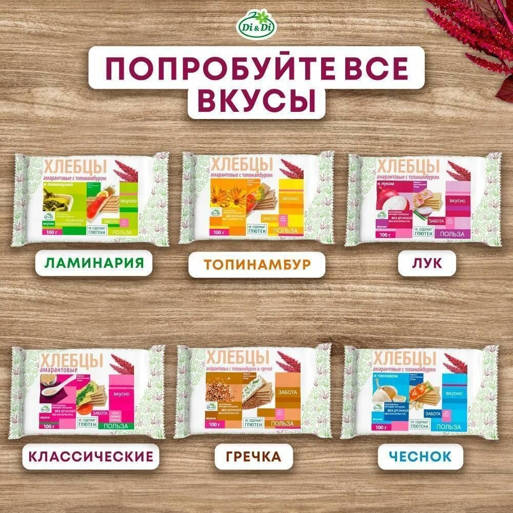 Хлебцы амарантовые с топинамбуром и чесноком/Di&Di (в наборе 3 шт. по 100г) информация: