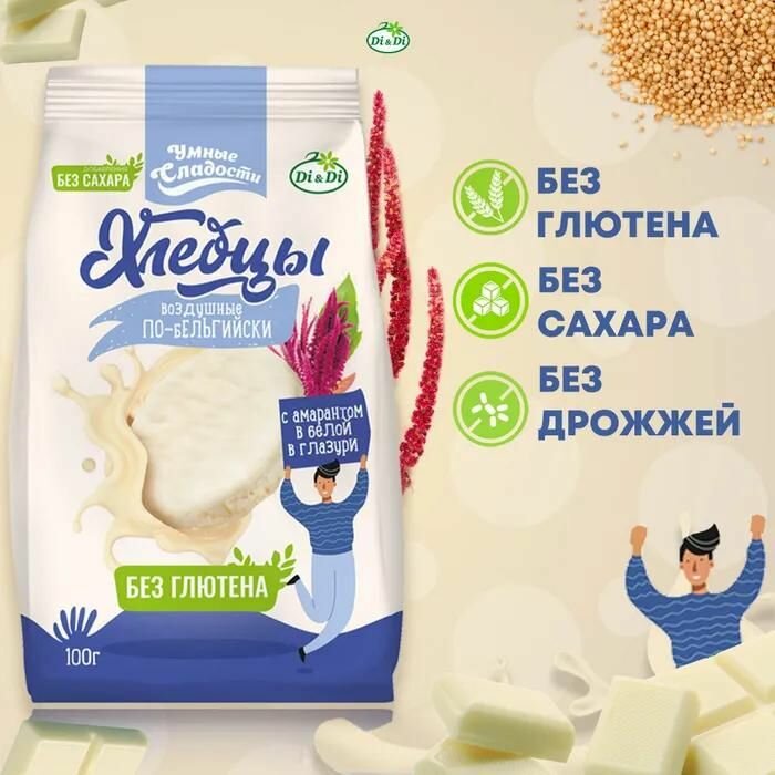 Хлебцы воздушные по-бельгийски с амарантом в белой глазури/Умные сладости (в наборе 3 шт. по 100г) информация: