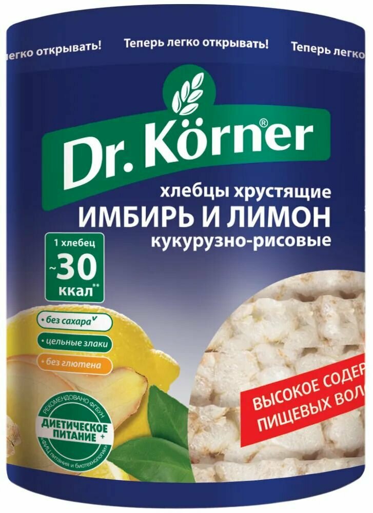 10 цен на Хлебцы рисово-кукурузные DR KORNER с имбирем и лимоном, 90г, 10 шт.