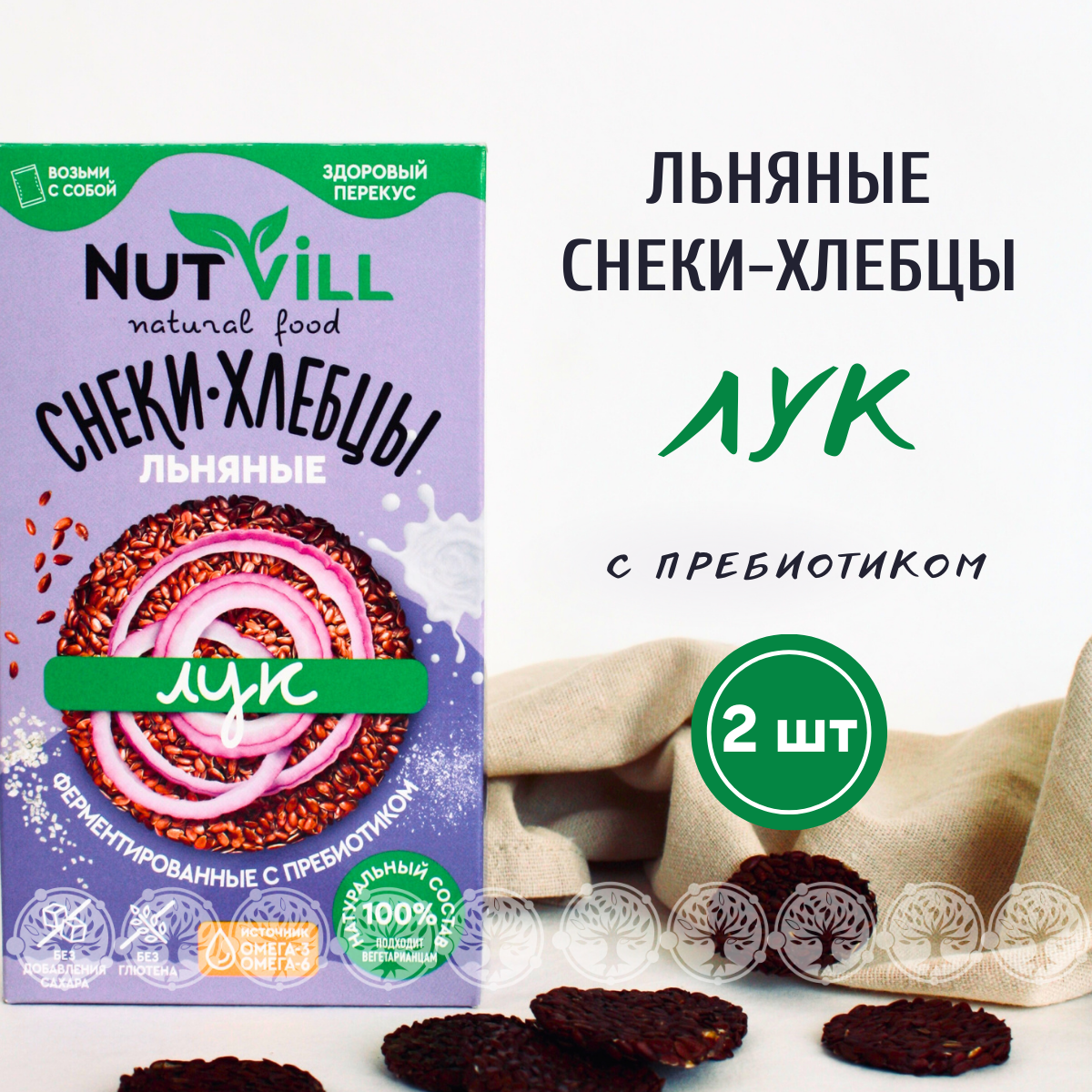 Снеки-хлебцы льняные NutVill "Лук" без глютена и сахара с пребиотиком 2 шт х 70г информация: