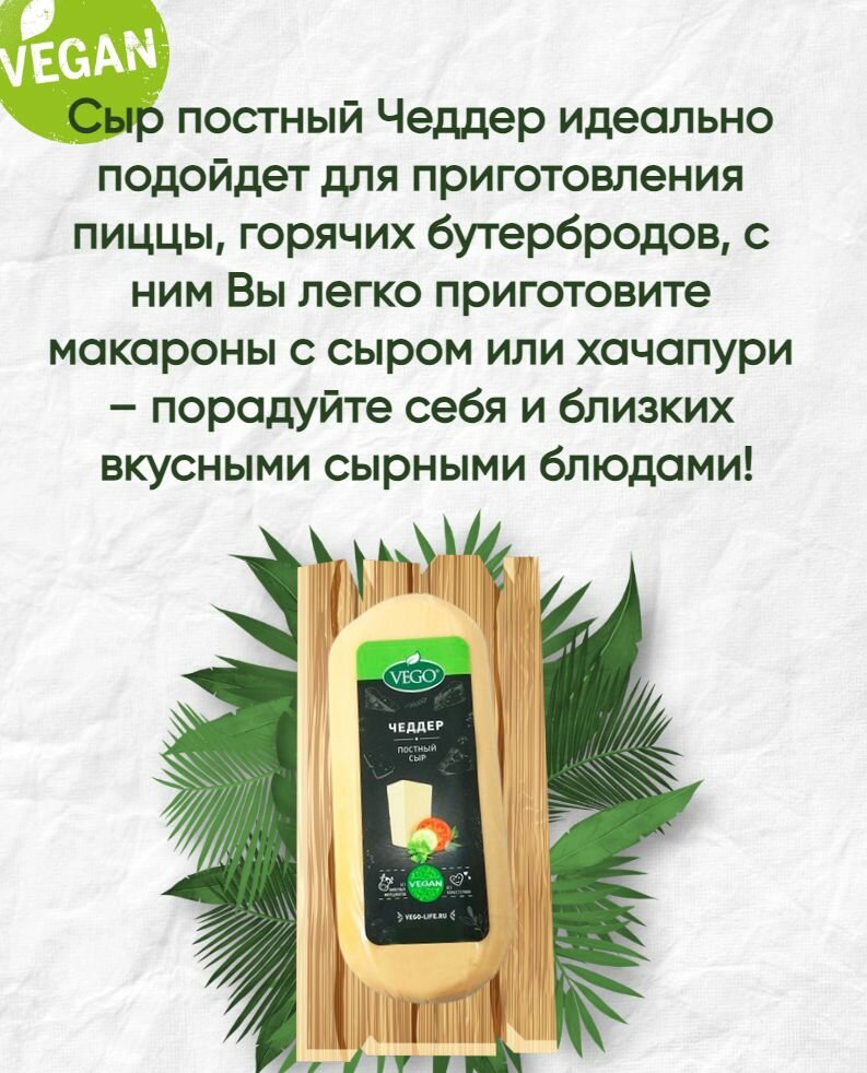 Постный веганский сыр Чеддер, растительный продукт VEGO, 400 грамм информация: