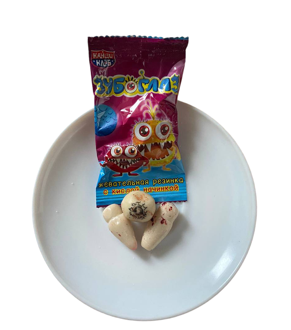 Отзывы на Жевательная резинка с кислой начинкой зубоглаз, 24 шт. по 13 грамм