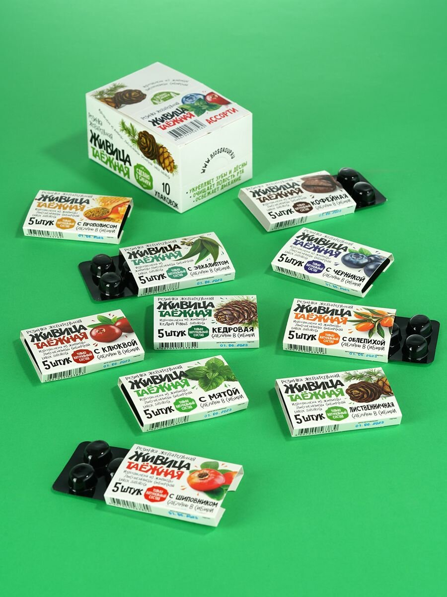 10 цен на Живица жвачка смолка таежная жевательная ассорти 10 уп