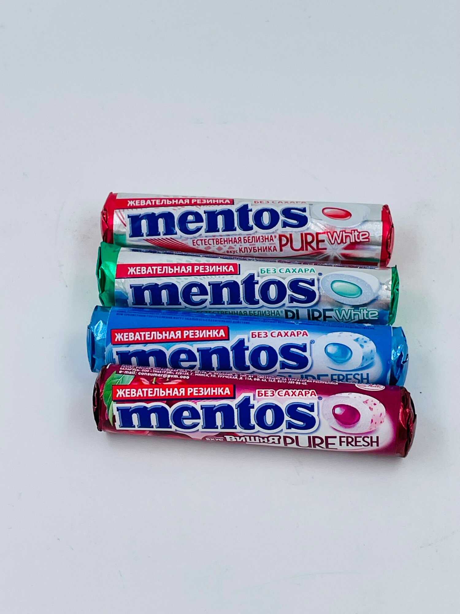 Mentos жевательная резинка Pure White вкус Клубника, Нежная мята, Вишня, Свежая мята (15,5х4) 62 г информация: