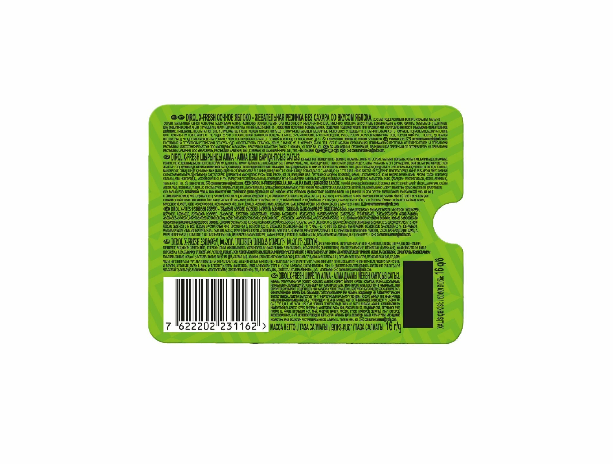 Жевательная резинка DIROL X-FRESH сочное яблоко без сахара со вкусом яблока, 12 шт по 16г информация: