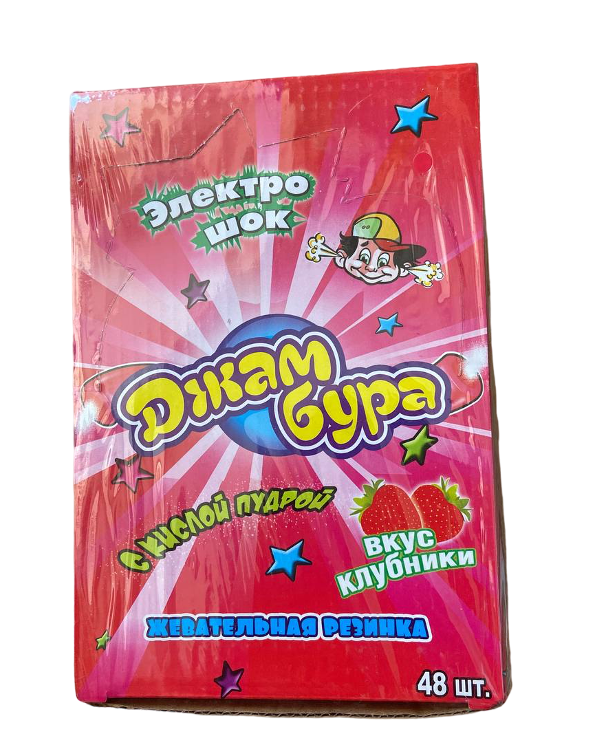 Отзывы на Жевательная резинка джамбура/электрошок со вкусом клубники, 48 шт. по 10 грамм