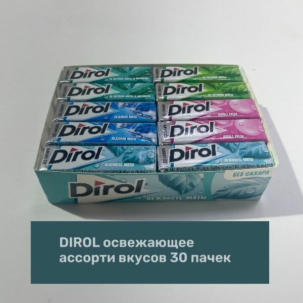 10 цен на Dirol Жевательная резинка Мята, 30 пачек ассорти