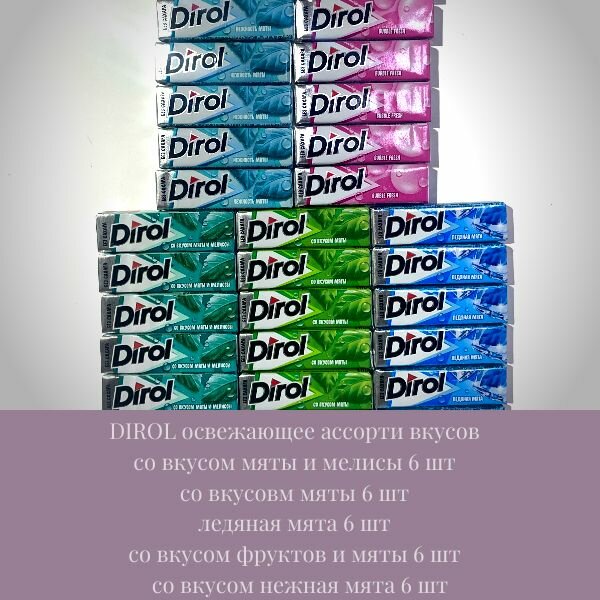 Характиристики этого товара не найдены!Отзывы на Dirol Жевательная резинка Мята, 30 пачек ассорти