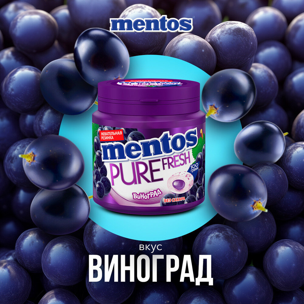Жевательная резинка Mentos Pure Fresh со вкусом винограда, 4 шт по 100 г информация: