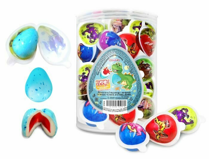 Гамми фрут Яйцо динозавра жевательная резинка с жидким центром, блок 50 шт. (10г х 50 х 12) информация: