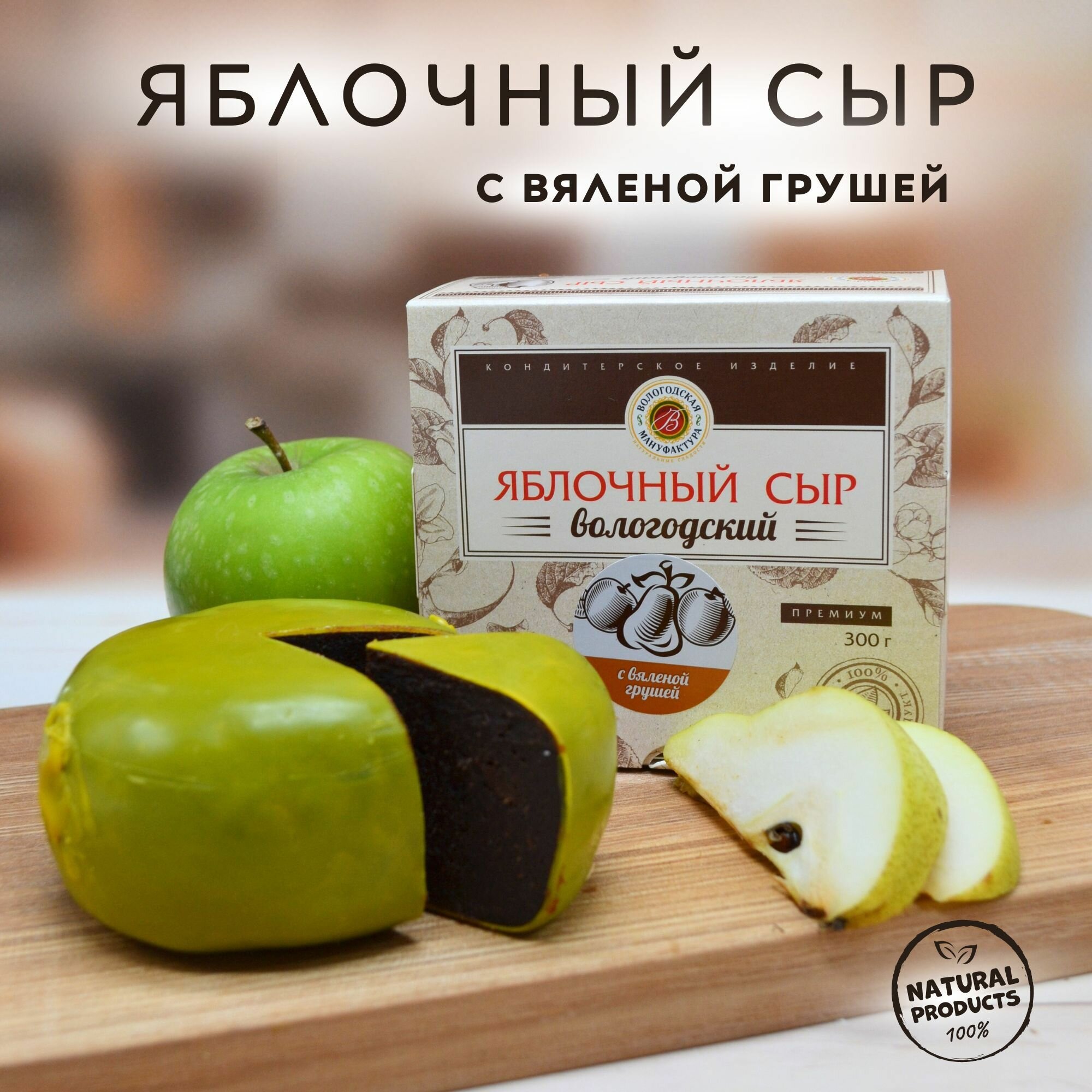 Яблочный сыр "Вологодская мануфактура" классический с вяленой грушей 300 гр. информация: