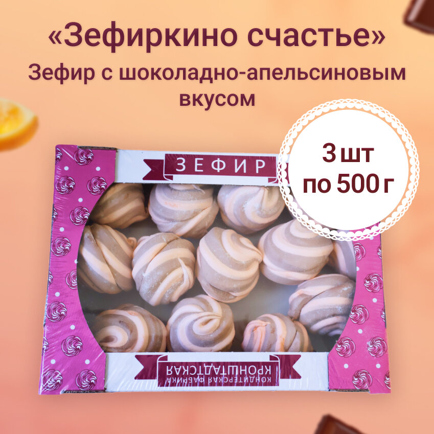 Зефир Кронштадтская КФ Зефиркино счастье с шоколадно-апельсиновым вкусом 500гр (3шт) информация: