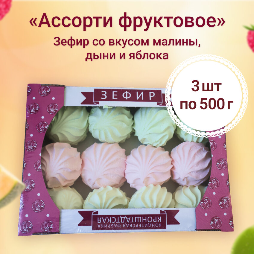 Зефир Кронштадтская КФ Фруктовое ассорти( малина, дыня, яблоко) 500гр (3шт) информация: