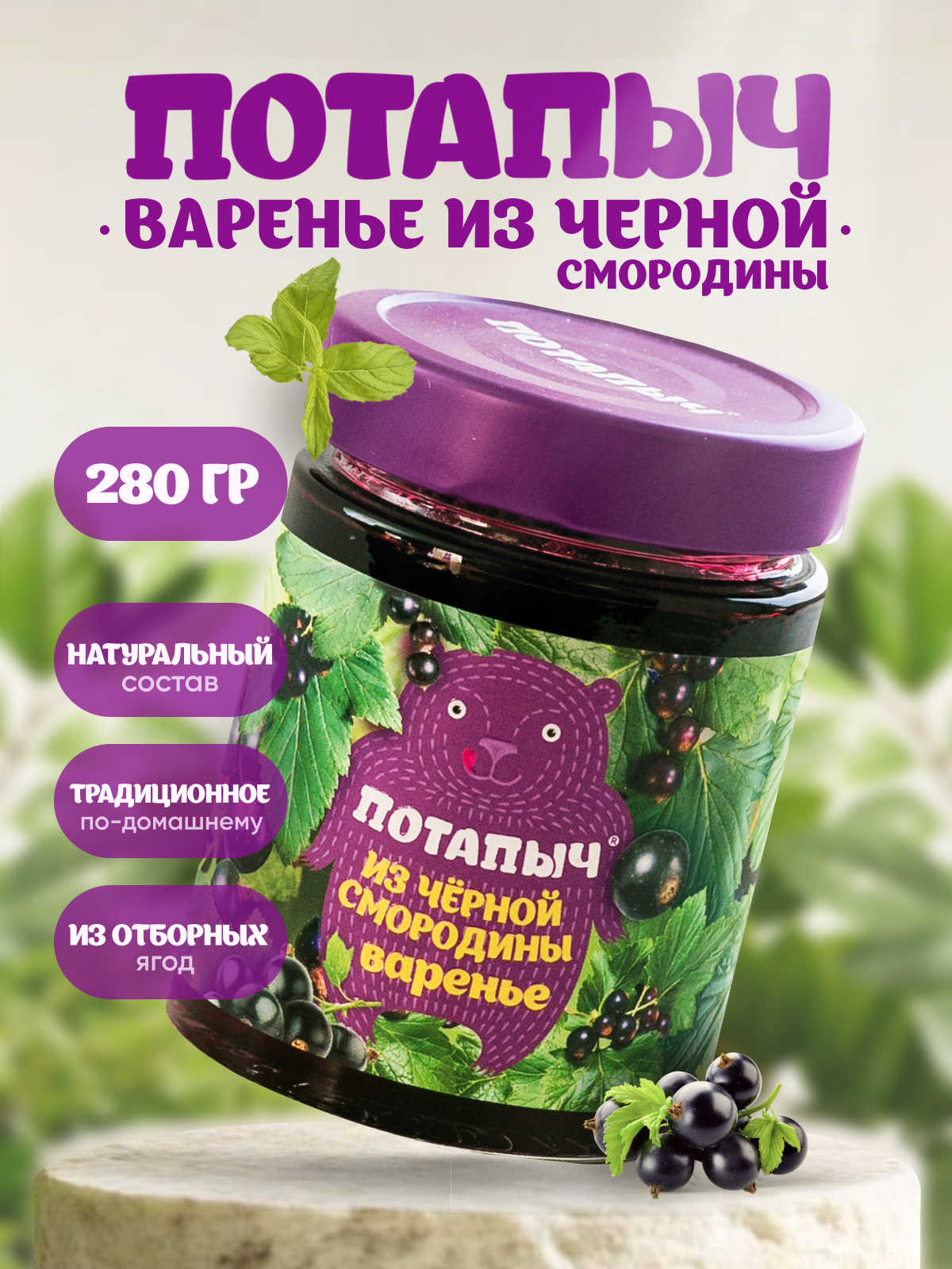 Отзывы на Варенье из чёрной смородины Потапыч натуральное, ст/бан 280 гр.