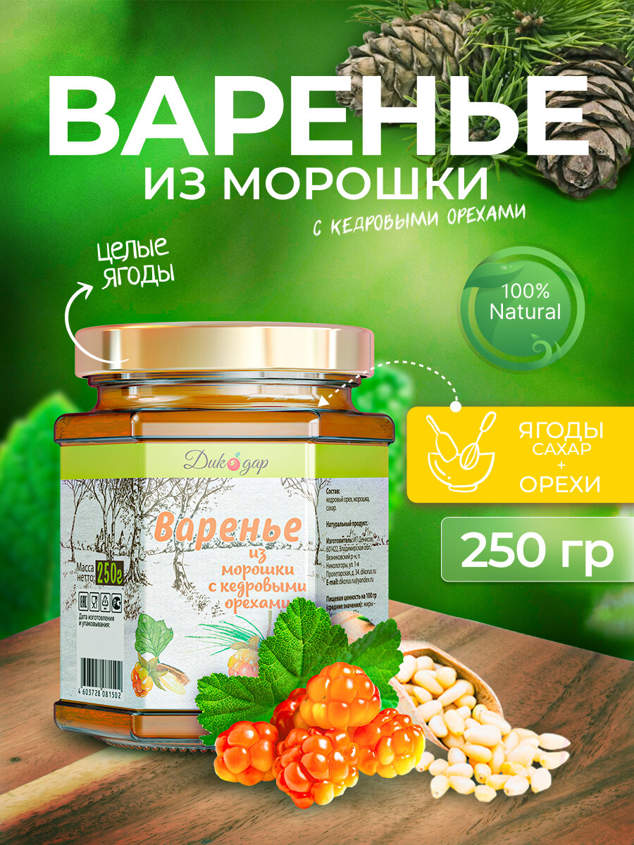 10 цен на Варенье из морошки с кедровыми орехами 200 мл - 250 гр