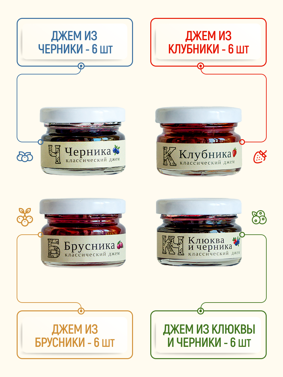 Ассорти Джем "Русский лес" 24 порционные баночки по 30 г. / ГОСТ информация: