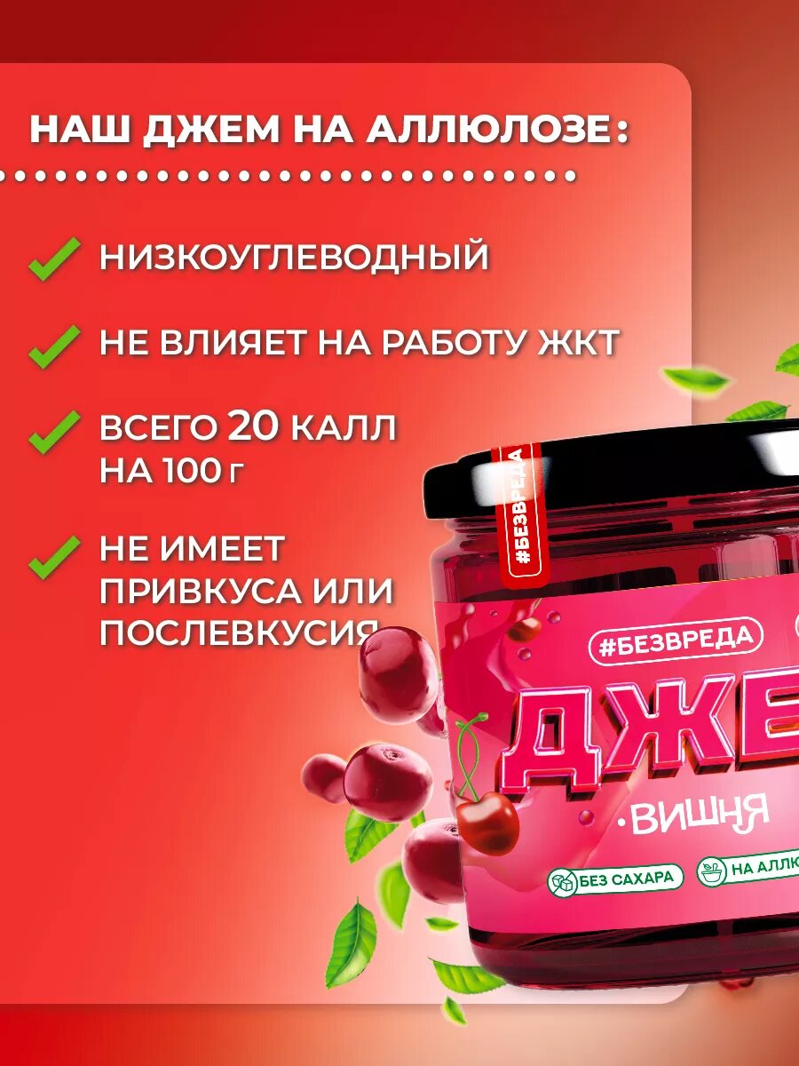 Джем "безвреда" из вишни без сахара 280 гр / Джем низкокалорийный вишня / Джем без сахара информация: