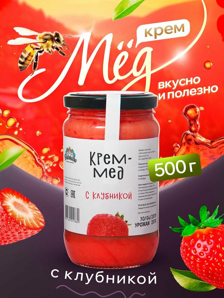 10 цен на Крем-мед с Клубникой "Пчёлково" 500г, цветочный, с сублимированными ягодами.