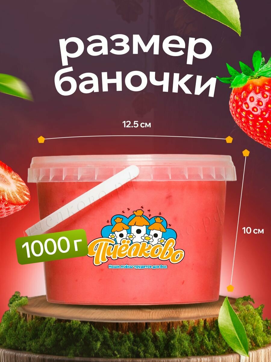 10 цен на Крем-мёд с Клубникой "Пчелково", 1 кг, цветочный, с сублимированными ягодами.