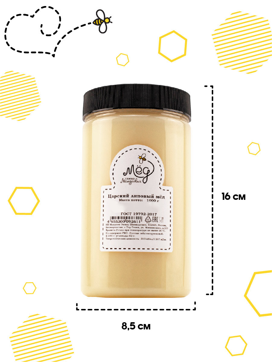 Башкирский Царский липовый мёд, 1кг натуральный мед, без сахара, сбор 2024 информация: