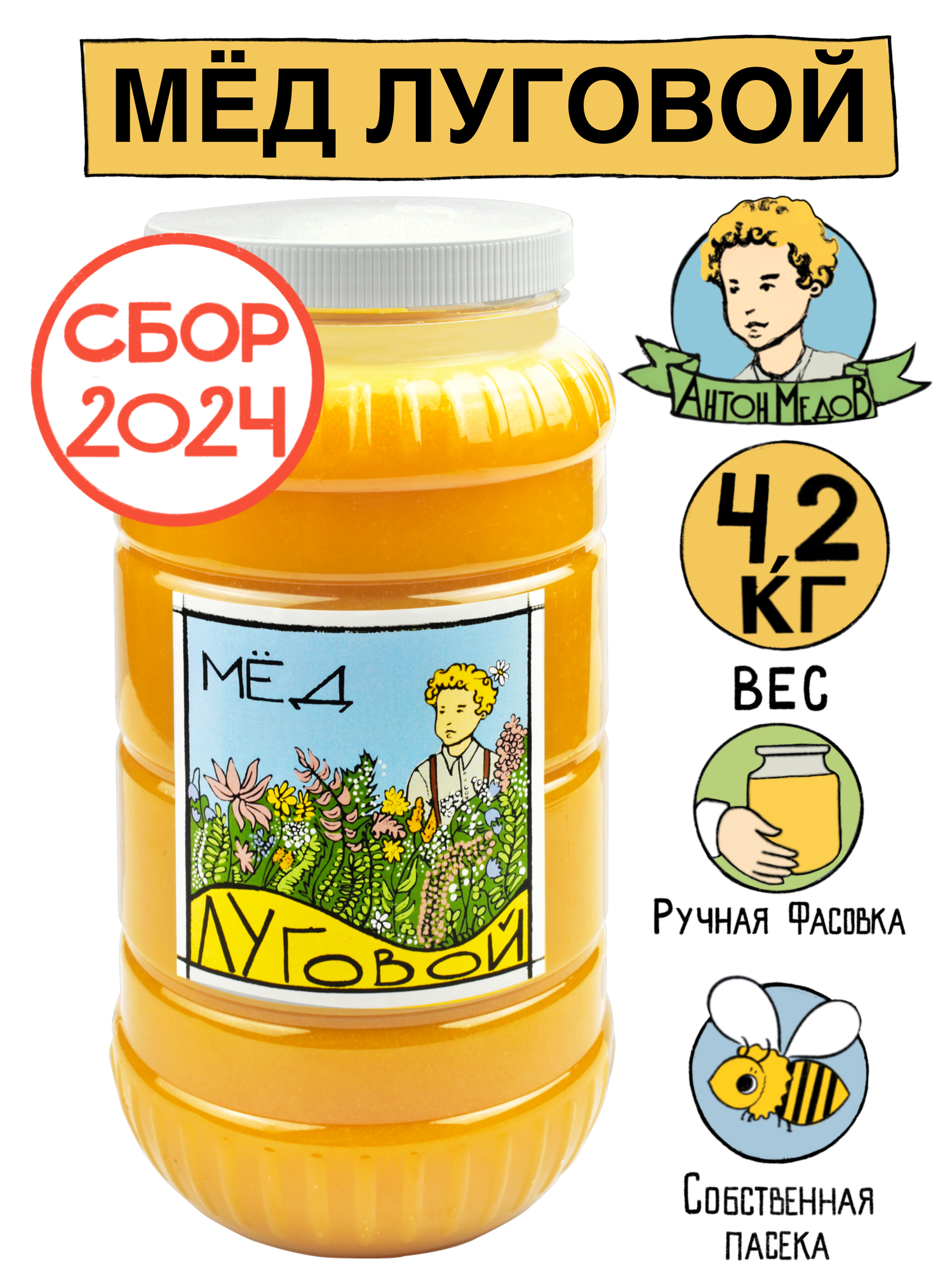Антон Медов/Мед Луговой натуральный 4.2 кг Без сахара 2024 г. Полезные сладости информация:
