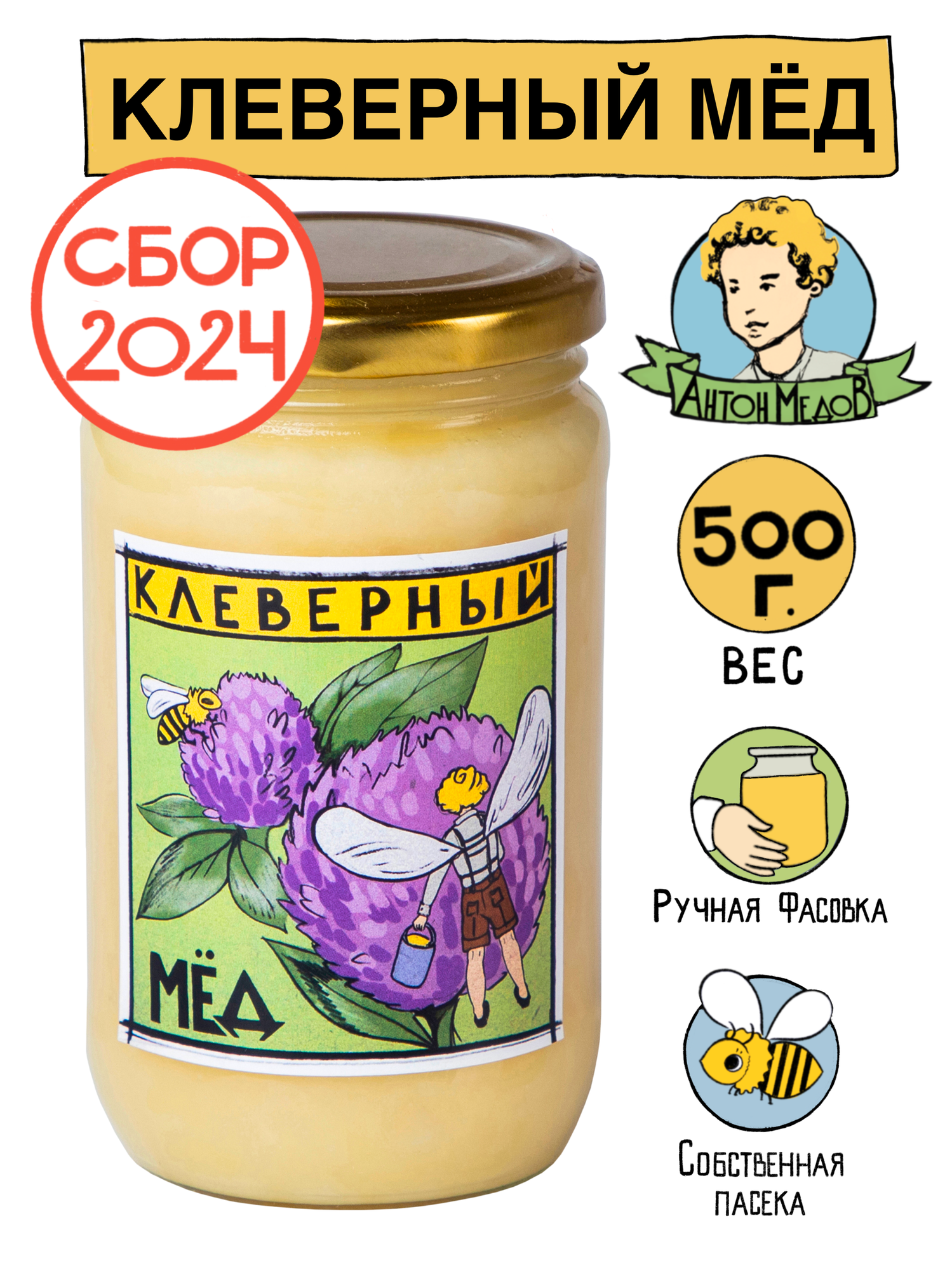 Антон Медов/Мед Клеверный натуральный 500 гр Без сахара 2024 г. Подарок на новый год информация: