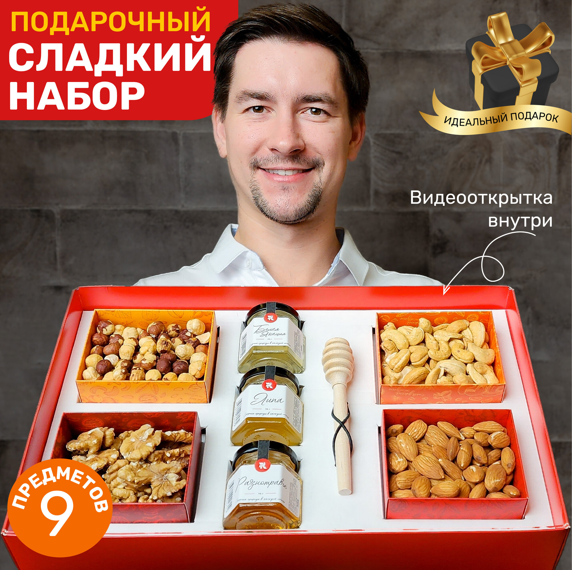 10 цен на Подарочный набор RAKITIN GIFTS "Вдохновляю на Чудо", орехи и мед подарок на 8 марта