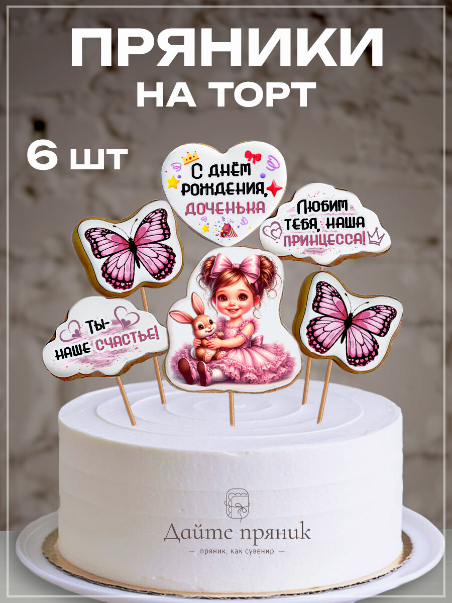 Имбирные пряники на день рождения для девочки, дочки, топперы на торт, украшение для торта информация: