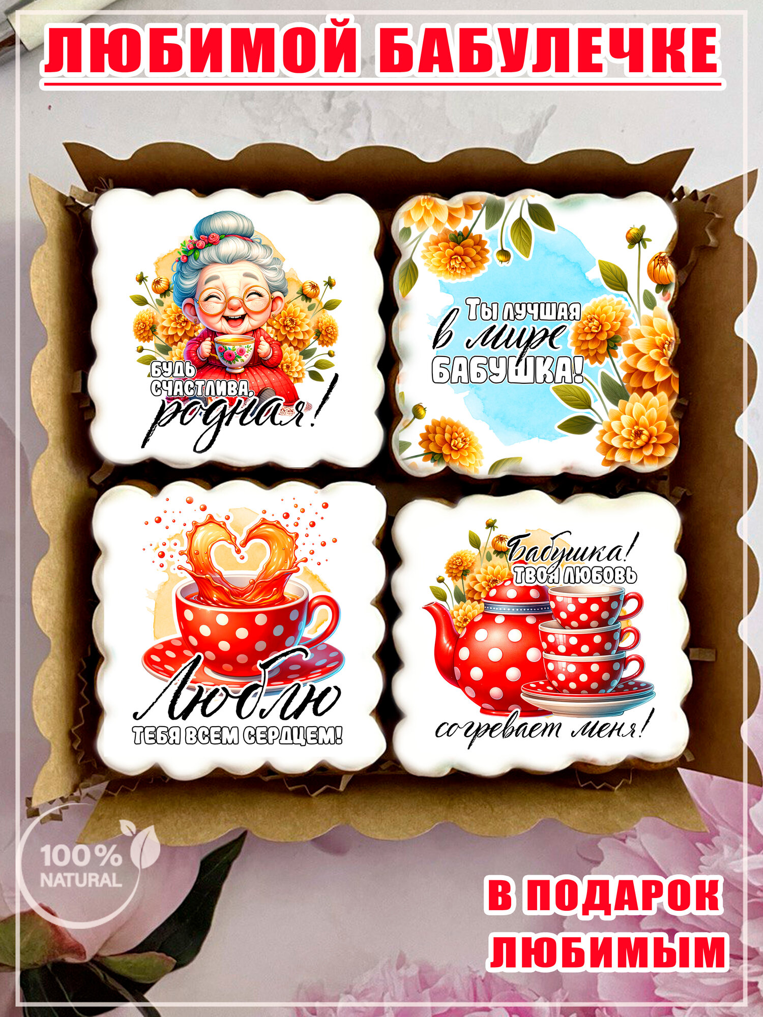 Подарочный набор имбирных пряников для бабушки, пряничные открытки с пожеланиями бабушке информация: