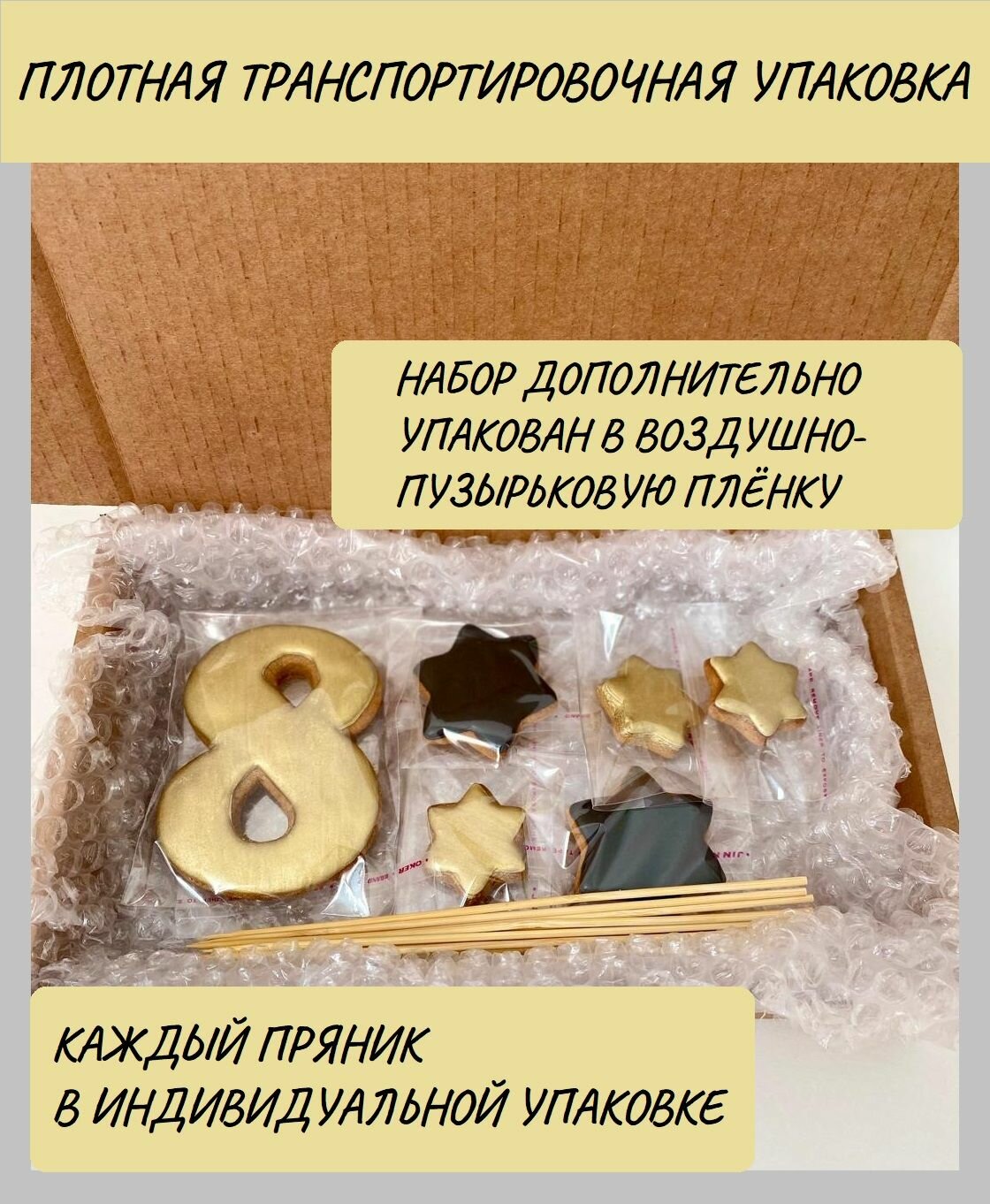 Отзывы на Пряник имбирно-медовый для торта цифра "8" золотая топпер на шпажке