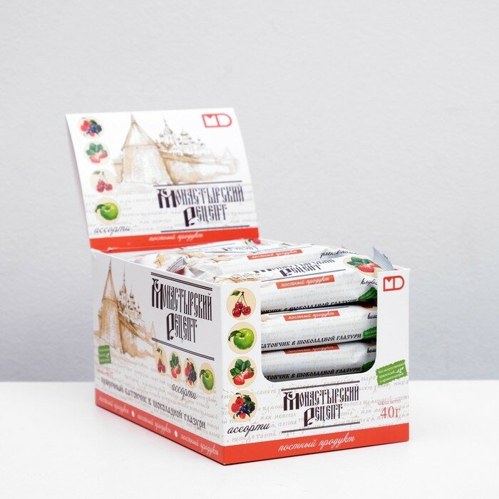 10 цен на Пряничный батончик "Монастырский рецепт" в шоколадной глазури, ассорти, 40 г, 6 штук