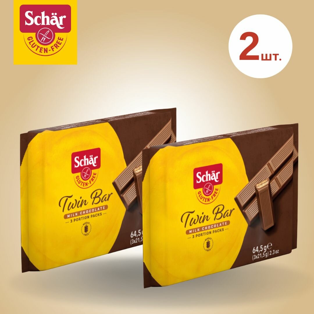 10 цен на Вафли в молочном шоколаде Twin Bar без глютена, т. м. Schar, 2 шт.