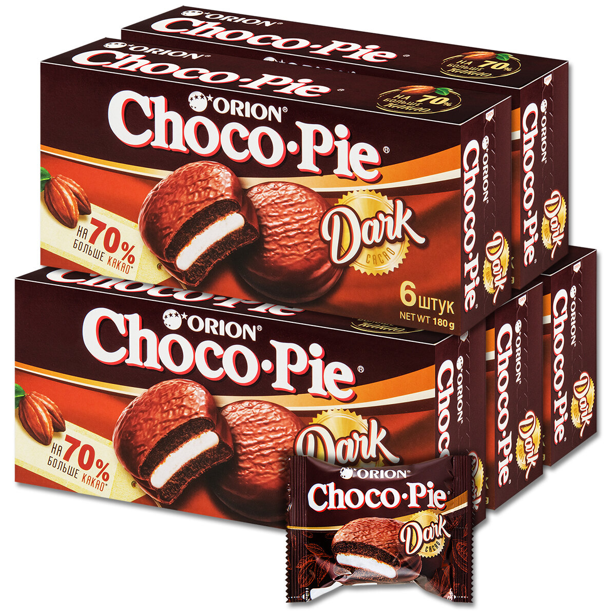 10 цен на Пирожное Чоко Пай бисквитное ORION Choco Pie Dark 6 шт, 180 г, 5 уп.